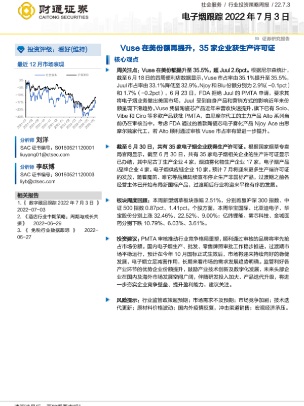 【财通证券】【20220703】社会服务行业电子烟跟踪:Vuse在美份额再提升,35家企业获生产许可证-8页 行业研究