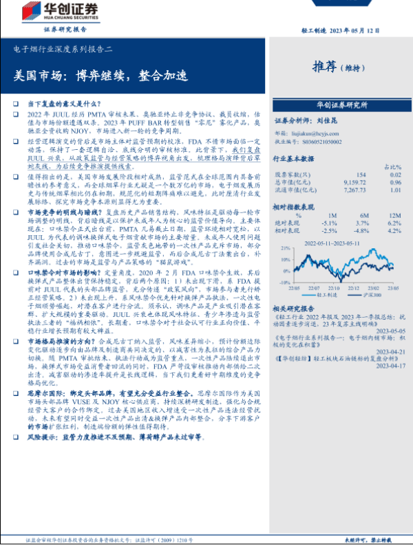 【华创证券】【20230512】电子烟行业深度系列报告二:美国市场,博弈继续,整合加速-24页 行业研究