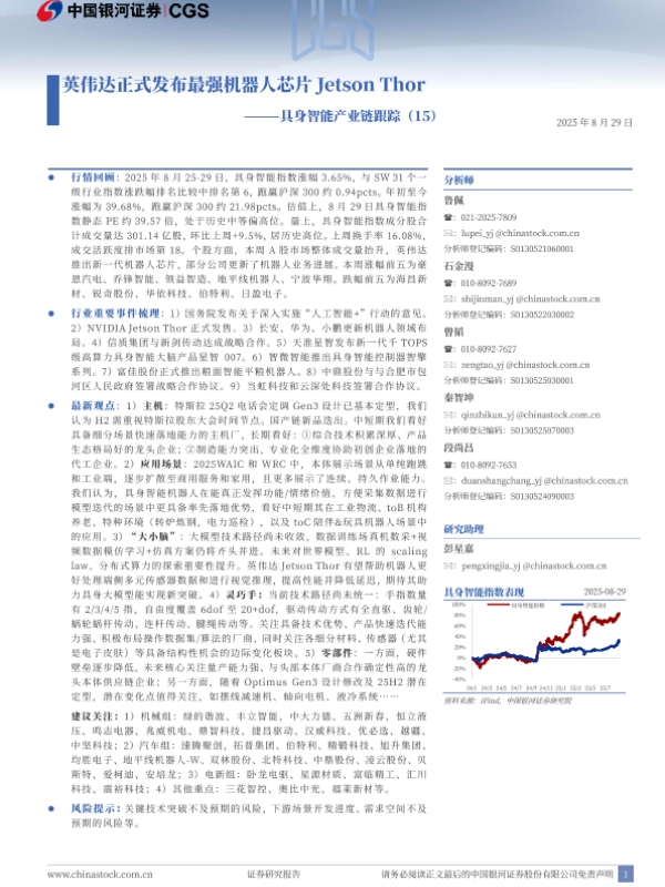 【中国银河证券(CGS)】【20250829】英伟达正式发布最强机器人芯片Jetson Thor-具身智能产业链跟踪(15)-10页 证券期货研究报告
