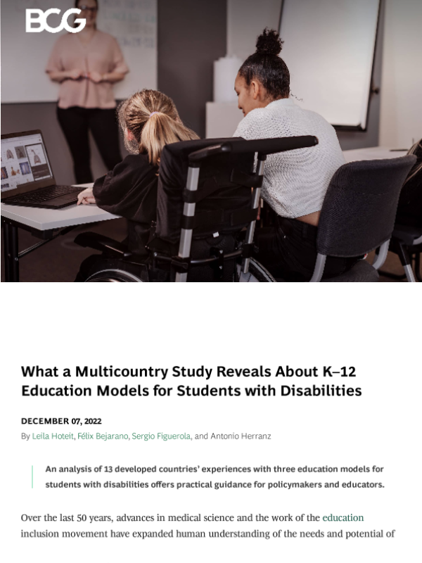 【Boston Consulting Group】【20221207】What a Multicountry Study Reveals About K–12 Education Models for Students with Disabilities-13页 Industry Research