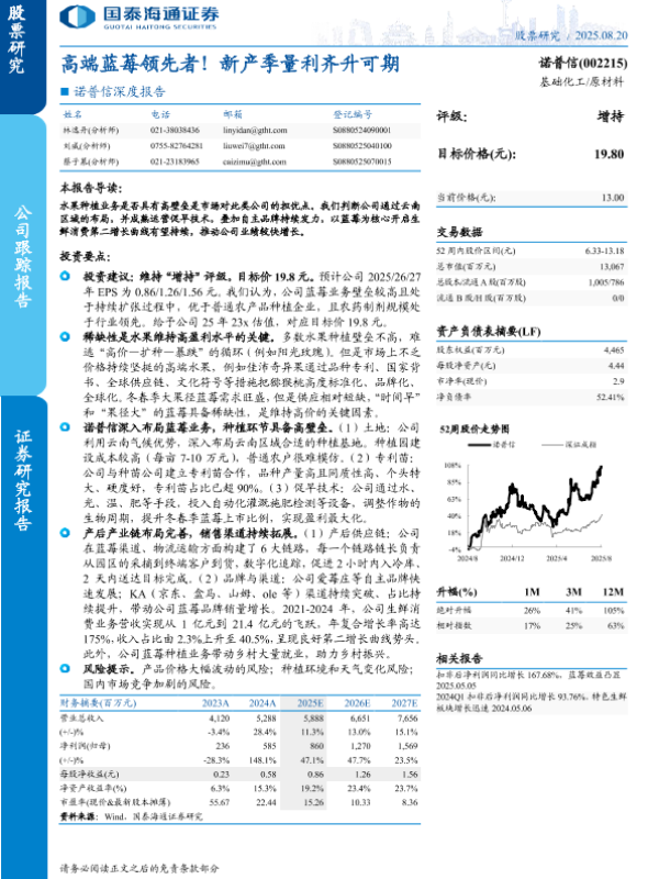 【国泰海通证券】【202508】高端蓝莓领先者!新产季量利齐升可期-21页 证券期货研究报告