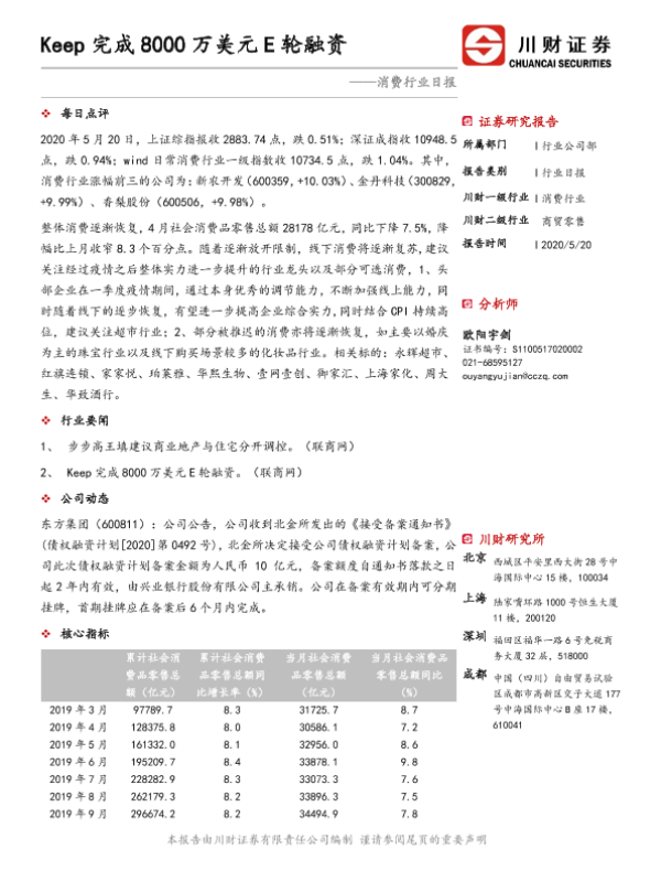 【川财证券】【20200520】消费行业日报:Keep完成8000万美元E轮融资-3页 证券期货研究报告