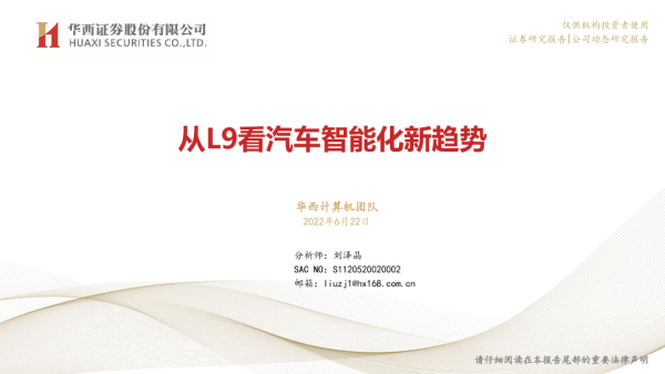 【华西证券】【20220622】计算机行业:从L9看汽车智能化新趋势-20页 行业研究