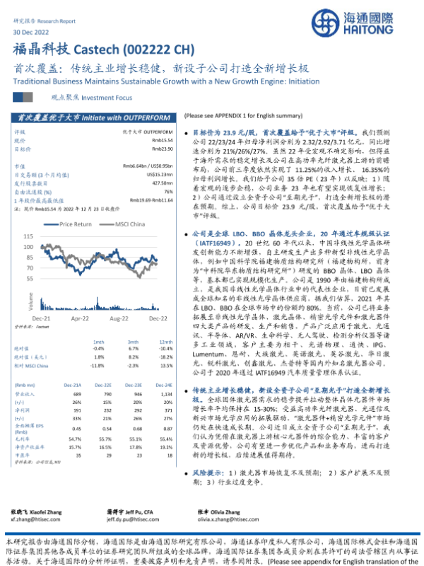 【海通国际】【20221230】20221230-海通国际-福晶科技-002222.SZ-首次覆盖:传统主业增长稳健,新设子公司打造全新增长极-25页 行业研究