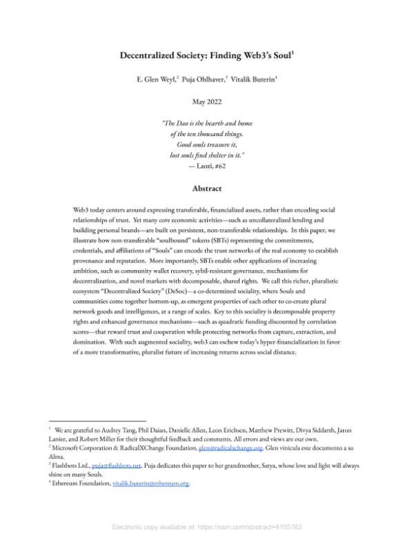 【E. Glen Weyl】【202205】Decentralized Society Finding Web3’s Soul-37页 学术论文