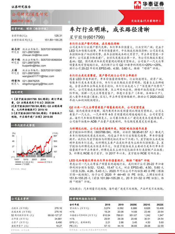 【华泰证券】【20200706】星宇股份:车灯行业明珠,成长路径清晰-22页 行业研究