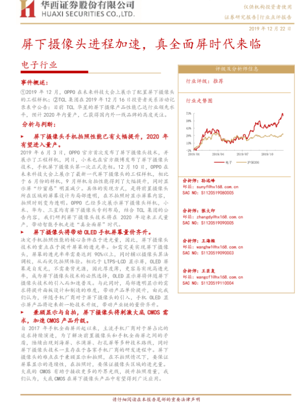 【华西证券】【20191222】屏下摄像头进程加速,真全面屏时代来临-4页 行业研究