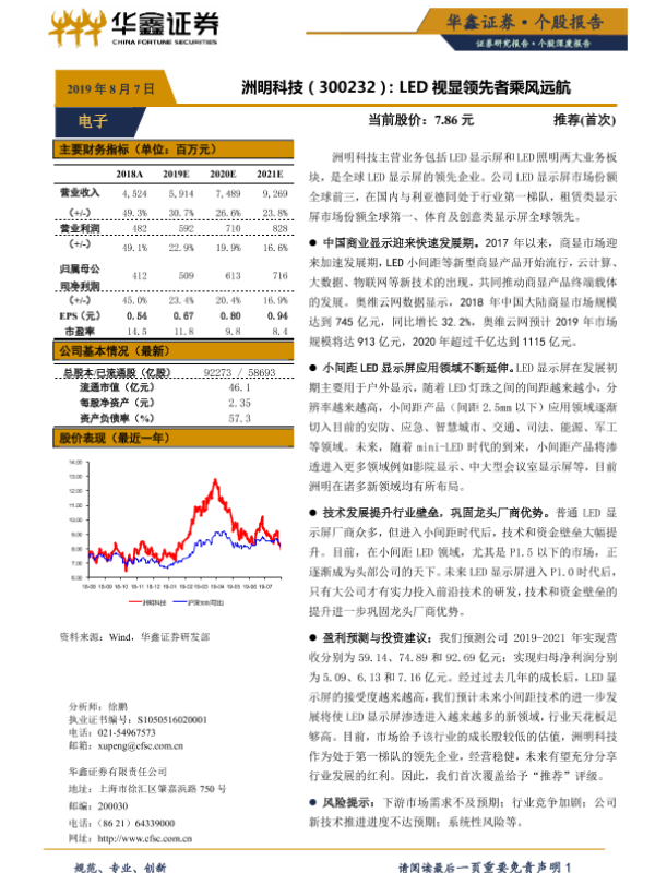 【华鑫证券】【20190807】洲明科技:LED视显领先者乘风远航-18页 行业研究