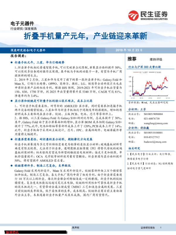 【民生证券】【20191023】20191023-民生证券-电子元器件深度报告:折叠手机量产元年,产业链迎来革新-31页 行业研究