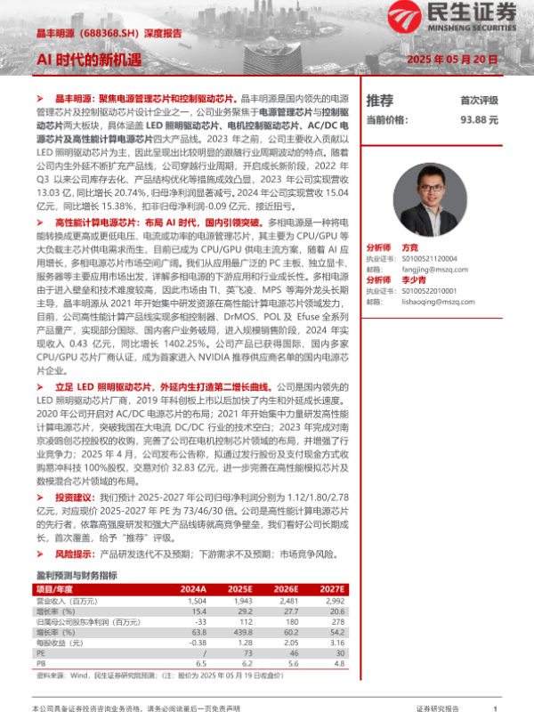 【民生证券】【20250520】晶丰明源深度报告:AI时代的新机遇-31页 证券期货研究报告