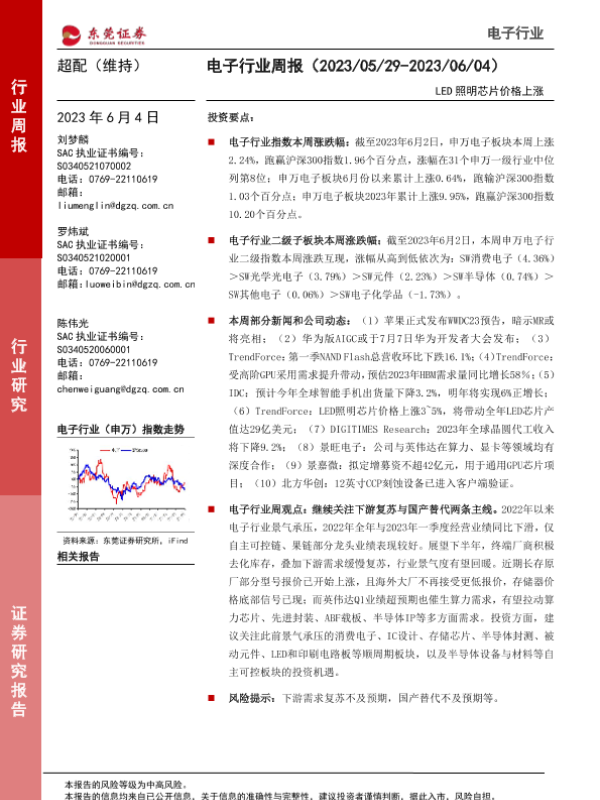【东莞证券】【20230604】20230604-东莞证券-电子行业周报:LED照明芯片价格上涨-12页 行业研究