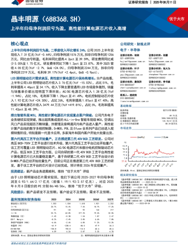 【国信证券】【20250811】上半年归母净利润扭亏为盈,高性能计算电源芯片收入高增-6页 证券期货研究报告