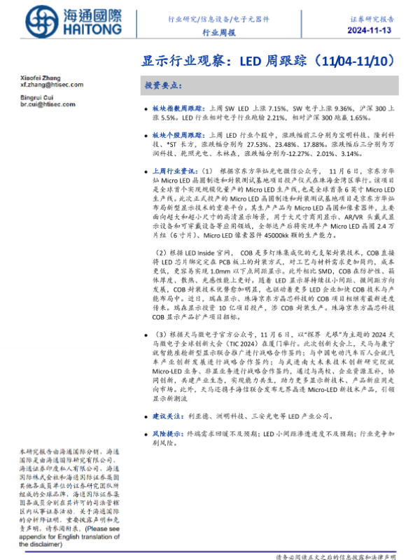 【海通国际】【20241113】显示行业观察:LED周跟踪-10页 行业研究