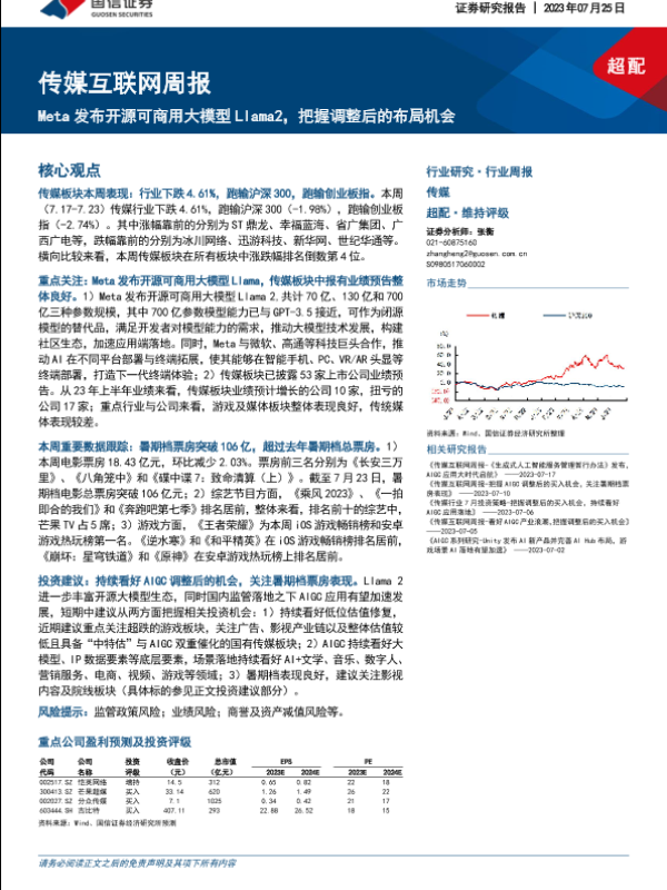 【国信证券】【20230725】传媒互联网周报:Meta发布开源可商用大模型Llama2,把握调整后的布局机会-21页 行业研究