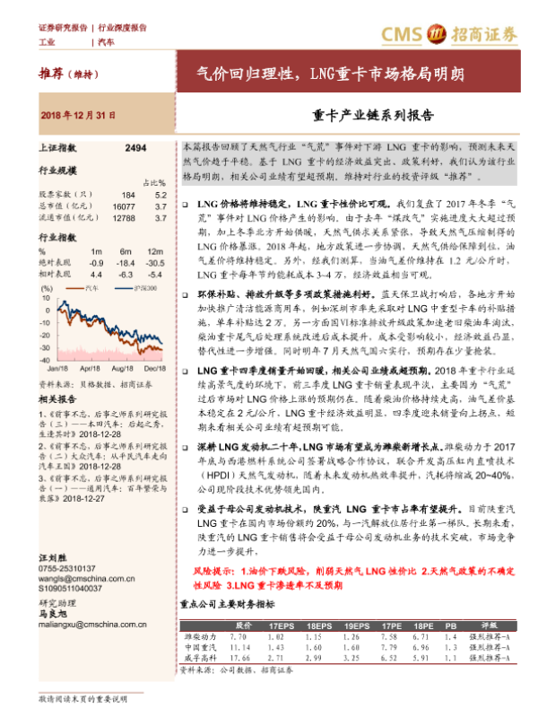 【海通证券】【20181231】气价回归理性,LNG重卡市场格局明朗-15页 行业研究