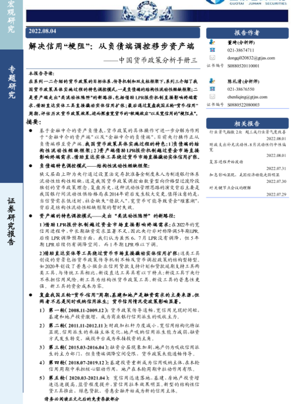 【国泰君安证券】【20220804】中国货币政策分析手册三:解决信用“梗阻”,从负债端调控移步资产端-29页 宏观策略