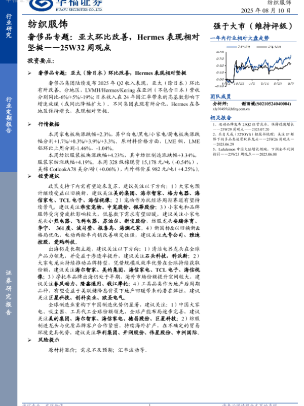 【华福证券】【20250810】Hermes-奢侈品专题:亚太环比改善,Hermes表现相对坚挺-15页 证券期货研究报告