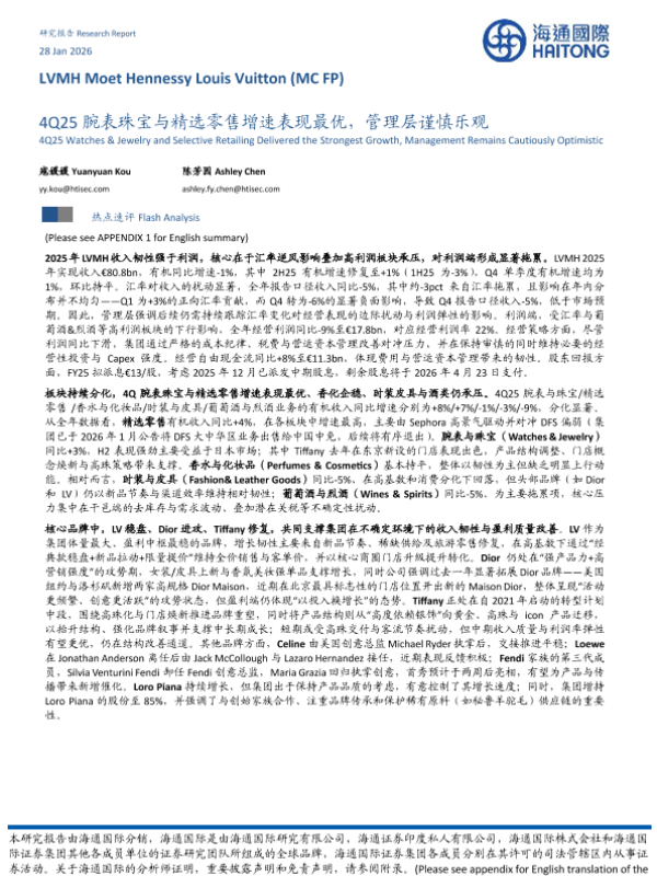 【海通国际】【202601】4Q25腕表珠宝与精选零售增速表现最优,管理层谨慎乐观-10页 证券期货研究报告