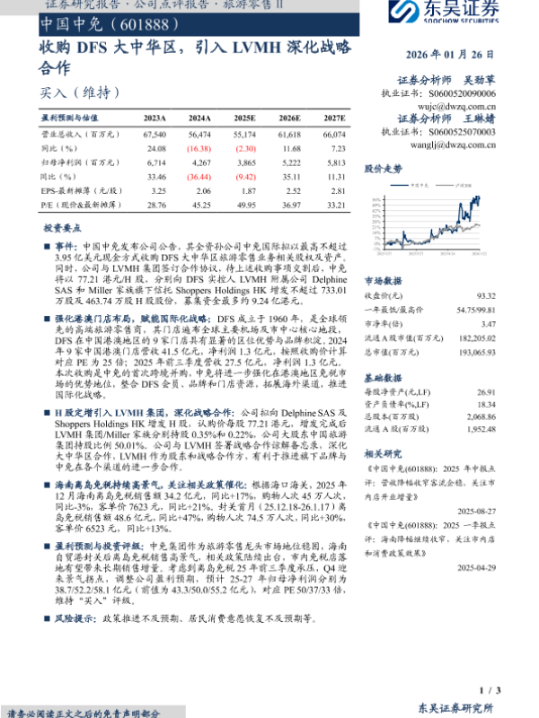 【东吴证券】【202601】中国中免(601888):收购 DFS大中华区,引入 LVMH深化战略合作-3页 证券期货研究报告