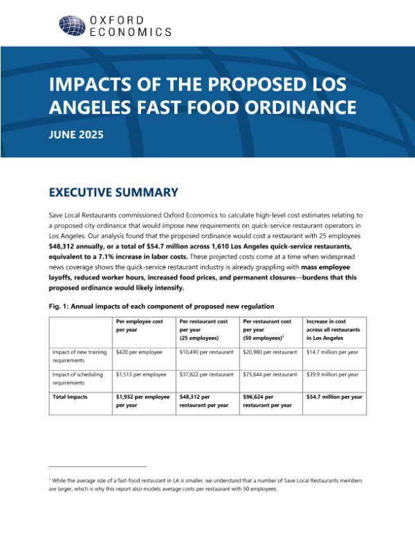 【Oxford Economics】【202506】IMPACTS OF THE PROPOSED LOS ANGELES FAST FOOD ORDINANCE-8页 行业研究