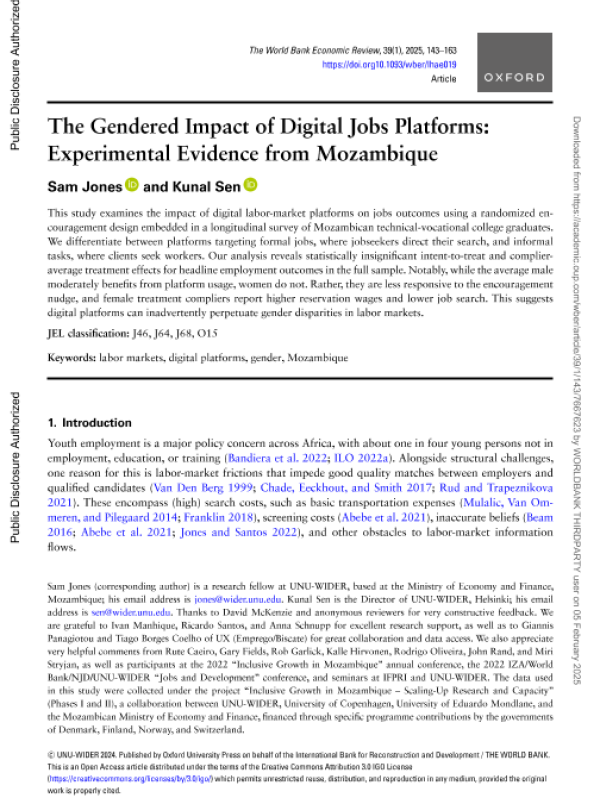 【The World Bank】【2025】The Gendered Impact of Digital Jobs Platforms Experimental Evidence from Mozambique-21页 学术论文