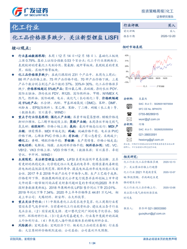 【广发证券】【20201220】20201220-广发证券-化工行业投资策略周报:化工品价格涨多跌少,关注新型锂盐LiSFI-24页 行业研究