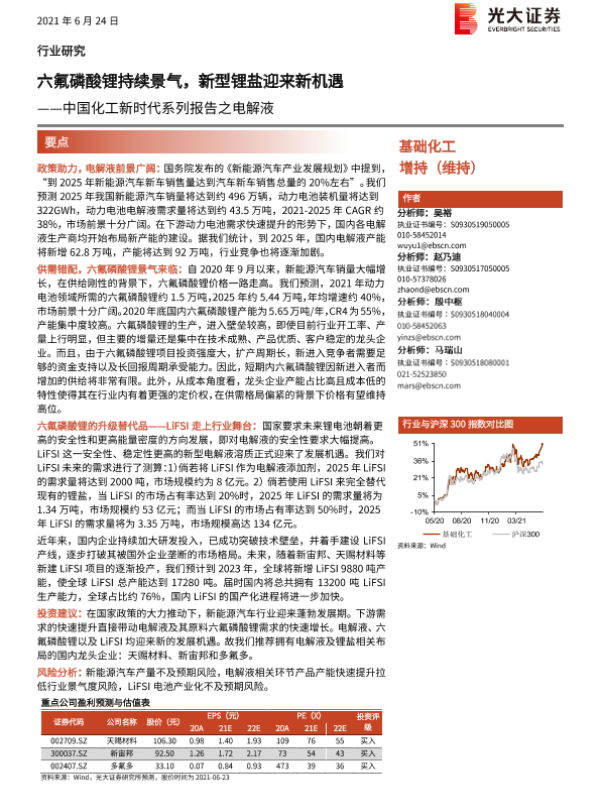 【光大证券】【20210624】中国化工新时代系列报告之电解液:六氟磷酸锂持续景气,新型锂盐迎来新机遇-28页 行业研究