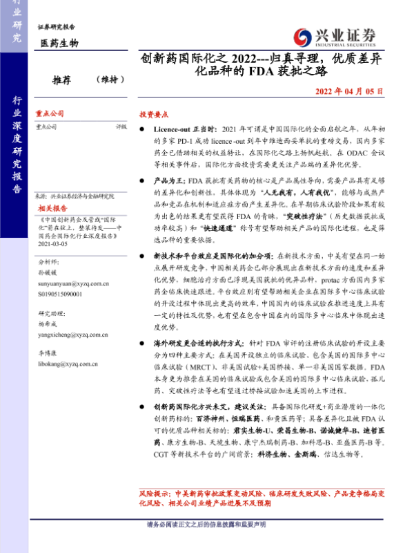 【兴业证券】【20220405】创新药国际化之2022:归真寻理,优质差异化品种的FDA获批之路-21页 行业研究