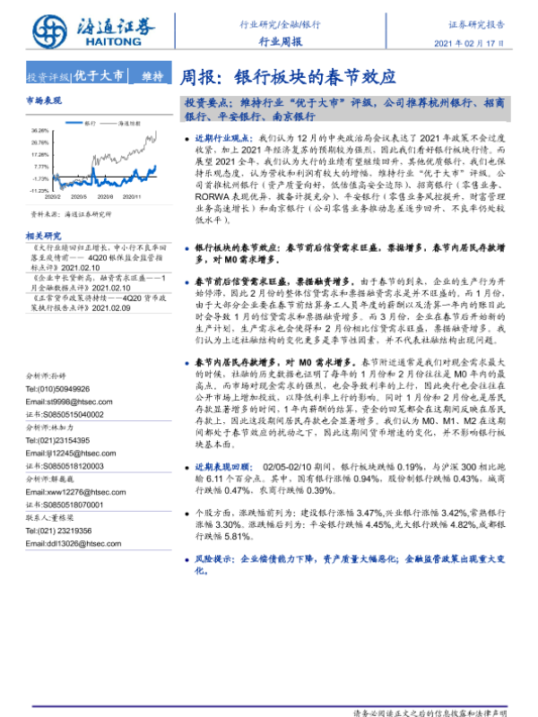 【海通证券】【20210217】银行行业周报:银行板块的春节效应-8页 行业研究