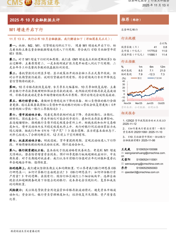 【海通证券】【202511】银行2025年10月金融数据点评:M1增速开启下行-10页 证券期货研究报告