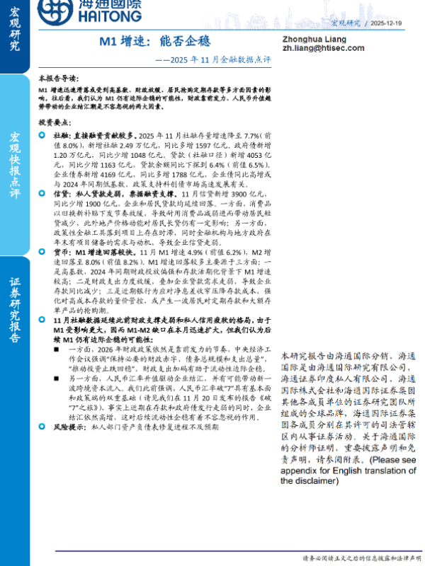 【海通国际】【202512】M1增速:能否企稳——2025年 11月金融数据点评-15页 证券期货研究报告