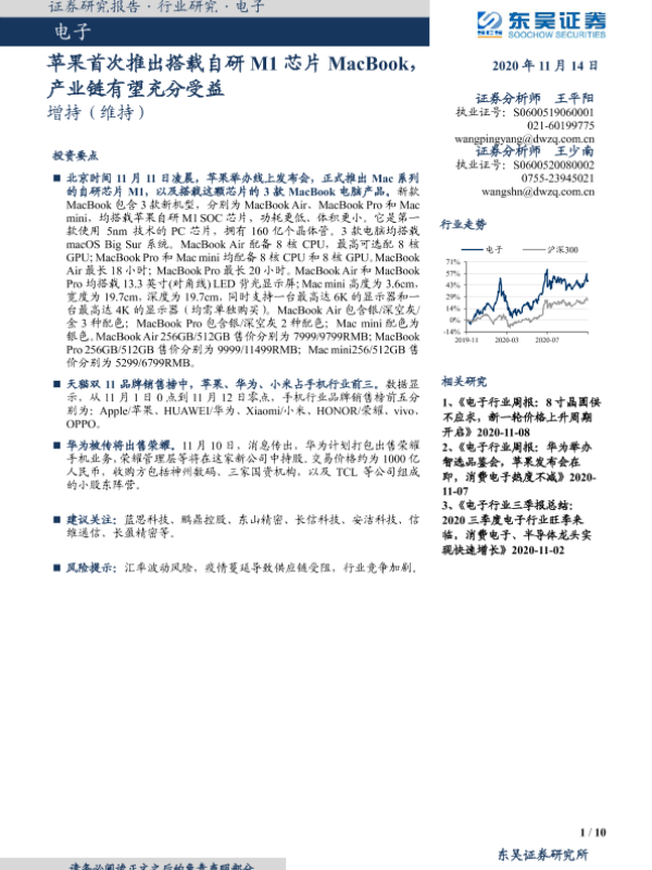 【东吴证券】【20201114】苹果首次推出搭载自研M1芯片MacBook,产业链有望充分受益-10页 行业研究
