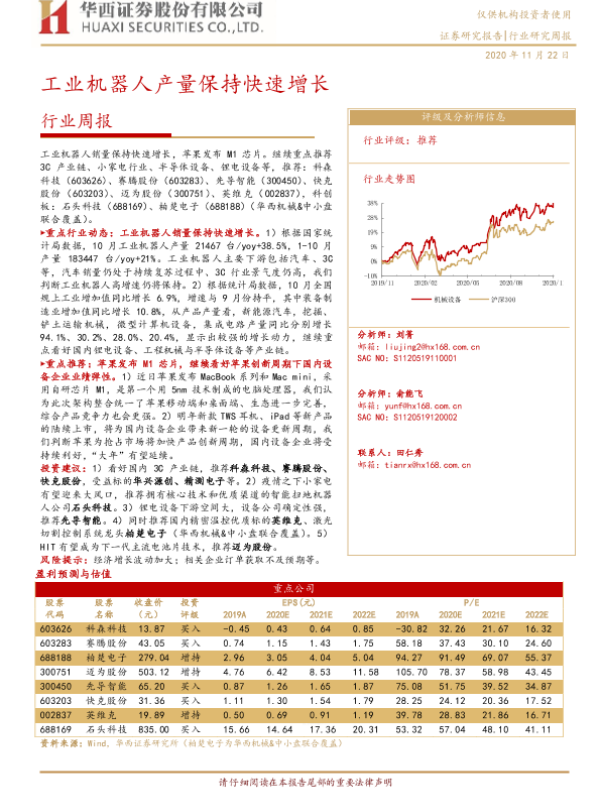 【华西证券】【20201122】机械设备行业周报:工业机器人产量保持快速增长-20页 行业研究