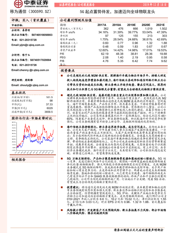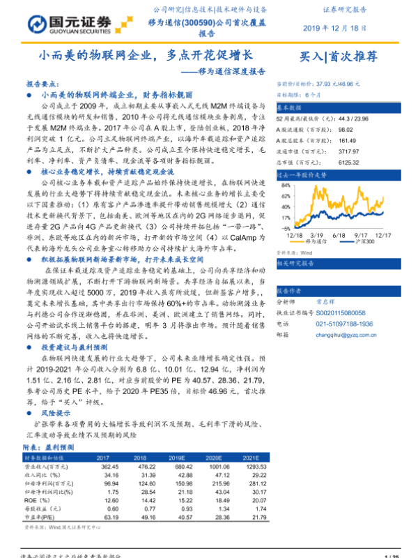 【国元证券】【20191218】移为通信深度报告:小而美的物联网企业,多点开花促增长-25页 行业研究