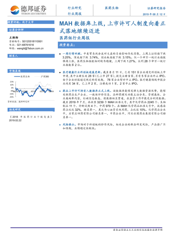 【德邦证券】【20190812】MAH数据库上线,上市许可人制度向着正式落地继续迈进-13页 行业研究