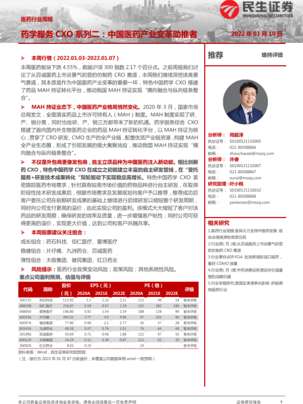 【民生证券】【20220110】药学服务CXO系列二:中国医药产业变革助推者-8页 行业研究