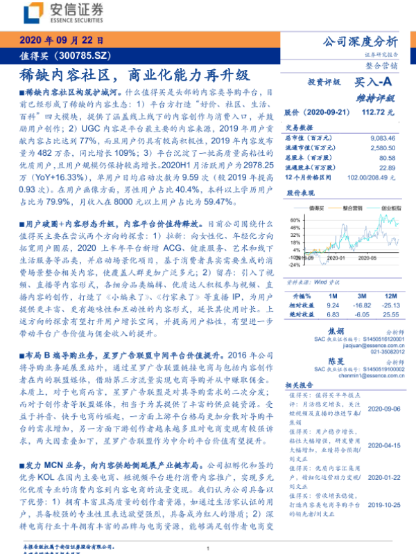 【信达证券】【20200922】20200922-信达证券-值得买-300785.SZ-深度报告:打造内容生态,成就内容电商第一股-37页 行业研究