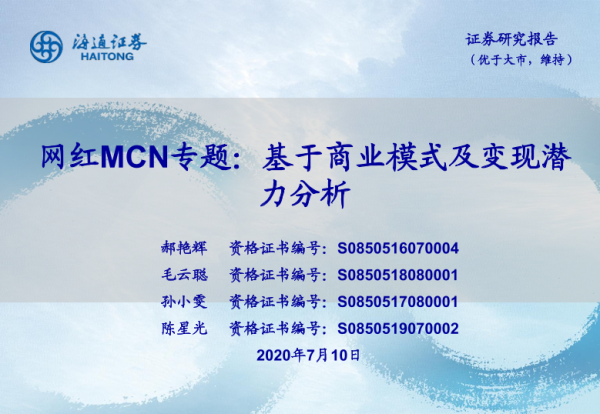 【海通证券】【20200710】网红MCN专题:基于商业模式及变现潜力分析-30页 行业研究