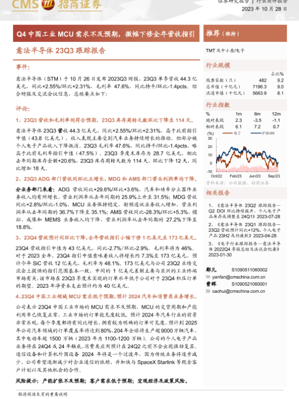 【海通证券】【20231028】20231028-招商证券-意法半导体23Q3跟踪报告:Q4中国工业MCU需求不及预期,微幅下修全年营收指引-11页 行业研究