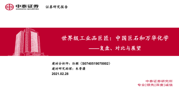 【中泰证券】【20210228】建筑材料行业:复盘、对比与展望:世界级工业品巨匠:中国巨石和万华化学-32页 行业研究