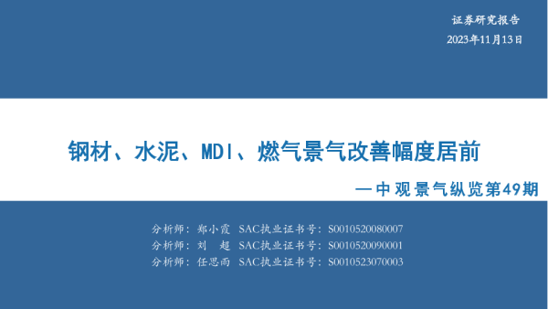 【华安证券】【20231113】中观景气纵览第49期:钢材、水泥、MDI、燃气景气改善幅度居前-35页 行业研究