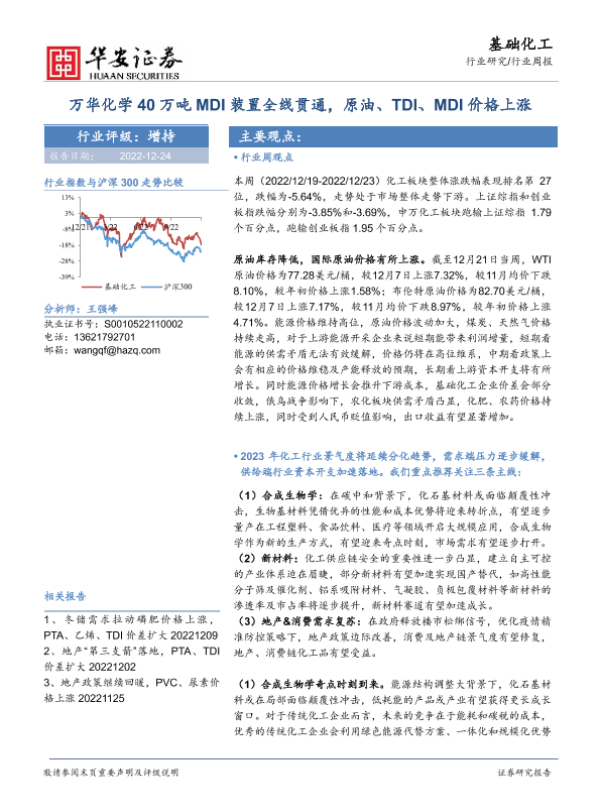 【华安证券】【20221224】20221224-华安证券-基础化工行业周报:万华化学40万吨MDI装置全线贯通,原油、TDI、MDI价格上涨-41页 行业研究