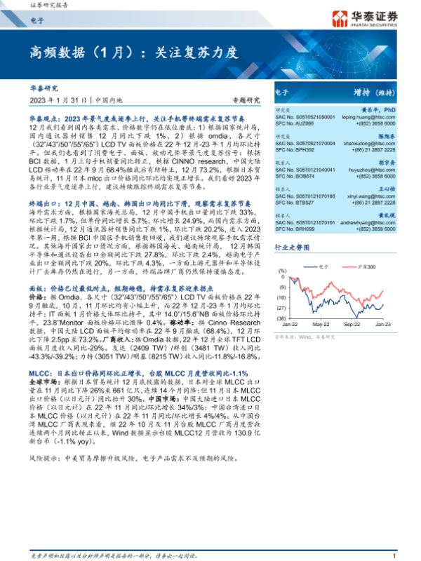 【华泰证券】【20230131】20230131-华泰证券-电子专题研究:高频数据(1月):关注复苏力度-13页 行业研究