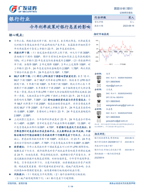 【广发证券】【20230816】今年利率政策对银行息差的影响-14页 行业研究