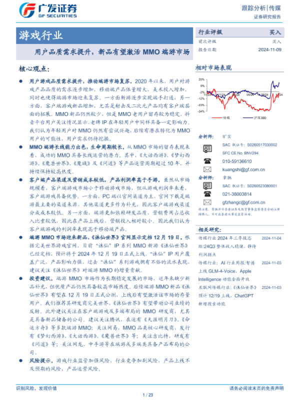 【广发证券】【20241109】用户品质需求提升,新品有望激活MMO端游市场-23页 行业研究