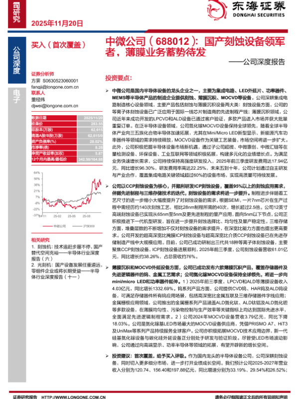 【东海证券】【202511】中微公司(688012):国产刻蚀设备领军者,薄膜业务蓄势待发-30页 证券期货研究报告