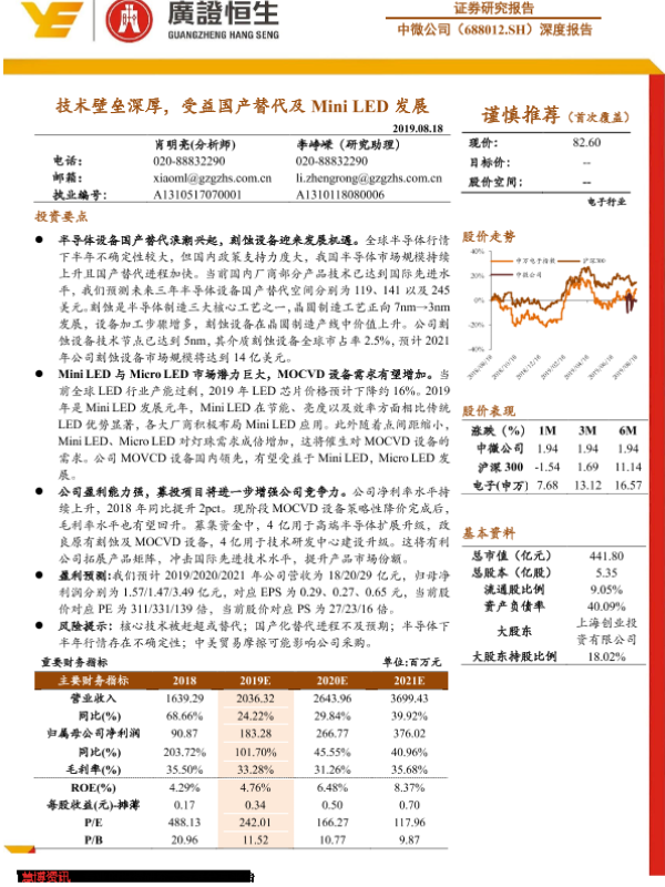 【广证恒生】【20190818】中微公司-688012.SH-深度报告:技术壁垒深厚,受益国产替代及Mini LED发展-38页 行业研究
