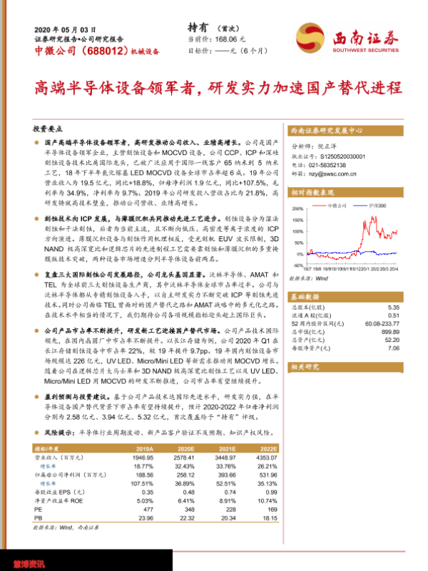 【西南证券】【20200503】中微公司-688012.SH-高端半导体设备领军者,研发实力加速国产替代进程-51页 行业研究