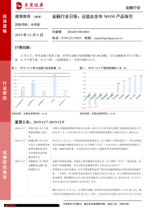 【东莞证券】【20191209】金融行业日报:证监会发布MOM产品指引-4页 行业研究