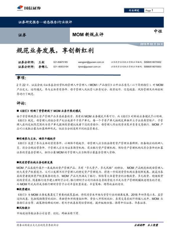 【国信证券】【20190224】证券行业MOM新规点评:规范业务发展,享创新红利-3页 行业研究
